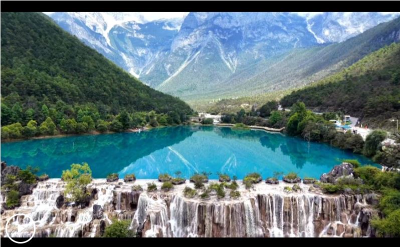 夏日氛圍感!麗江藍月谷湖水如鏡“復(fù)制”天光山色
