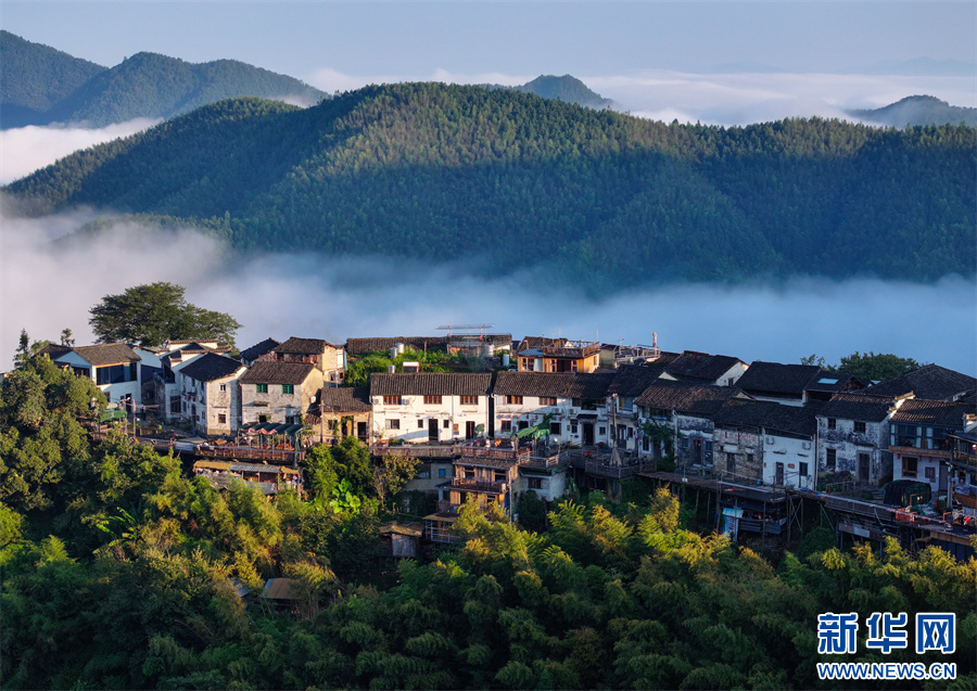 當(dāng)日,雨后初霽的安徽省黃山市休寧縣溪口鎮(zhèn)木梨硔村出現(xiàn)磅礴壯美的云海景觀。連綿的群山與漂浮的云海環(huán)抱著依山而建的徽派古村落,勾勒出一幅絕妙的秋日水墨畫(huà)卷。新華網(wǎng)發(fā)(施亞磊 攝)