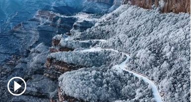 山西太行板山景區(qū)現雪凇景觀
