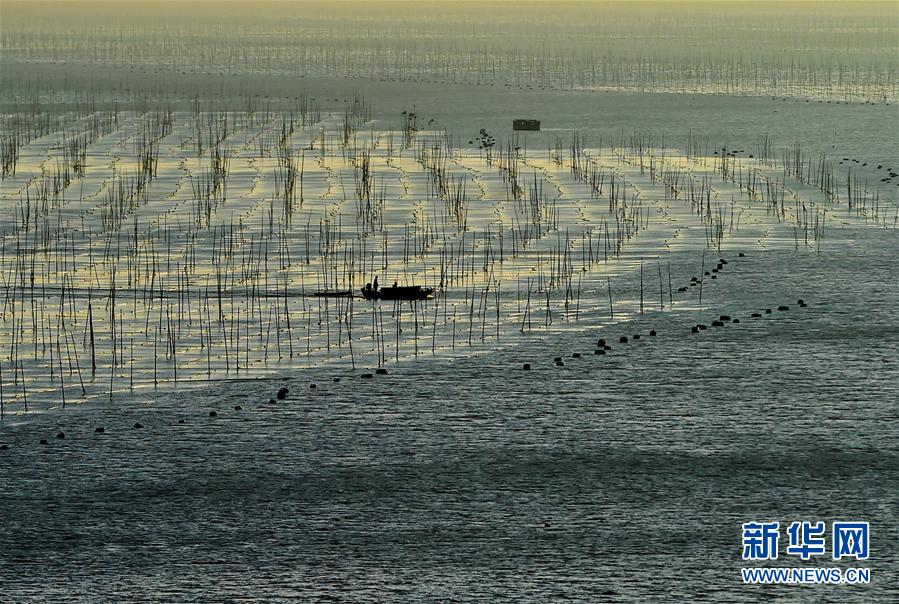 12月9日,夕陽(yáng)西下,一艘漁船穿行在海上紫菜養(yǎng)殖架間。福建省寧德市的霞浦縣以美麗的淺海、灘涂聞名,豐富的旅游資源和人文資源一直是攝影師追逐的靈感所在。 新華社記者魏培全攝