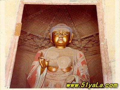 走進(jìn)第一層塔的南門,迎面便是高約10米的釋迦塑像。頂部有精美華麗的藻井。內(nèi)槽的墻壁上,畫有六幅如來佛像,門洞兩側(cè)的墻壁上,也繪有金剛、天王、弟子等壁畫。壁畫中最引人注目的是內(nèi)槽門額壁板上的三個(gè)女供養(yǎng)人。畫面雖不大,但人物的體態(tài)勻稱,面容豐滿,神情安詳而虔誠(chéng),衣帶似被微風(fēng)吹動(dòng),在表態(tài)中給人以動(dòng)的感覺。畫面的色彩至今仍很鮮艷,可能是后人在遼畫的基礎(chǔ)上重新描飾的。