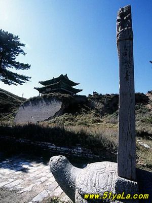 雄關(guān)雁門(mén),居“天下九塞”之首(《呂氏春秋》)。從戰(zhàn)國(guó)時(shí)期的趙武靈王起,歷代都把此地看作戰(zhàn)略要地。趙置雁門(mén)郡,此后多以雁門(mén)為郡、道、縣建制戍守。雁門(mén)關(guān)之稱,始自唐初。因北方突厥崛起,屢有內(nèi)犯,唐駐軍于雁門(mén)山,于制高點(diǎn)鐵裹門(mén)設(shè)關(guān)城,戍卒防守?!短茣?shū)·地理志》描述這里“東西山巖峭拔,中有路,盤(pán)旋崎嶇,絕頂置關(guān),謂立西徑關(guān),亦曰雁門(mén)關(guān)?!焙蠼?jīng)五代十國(guó)、宋、遼、金、元約四百余載。元朝設(shè)千戶所,關(guān)城被毀。明代吉安侯陸享于洪武七年(1374)自監(jiān)民工筑新關(guān)于舊關(guān)東北十里處的要道。南距代城縣四十余里,北鄰廣武古城二十一里,地勢(shì)更為險(xiǎn)要。明末清初的著名學(xué)者顧炎武曾親臨此地。他寫(xiě)道“雁門(mén)重關(guān),山巒在演,霞飛云舉,兩山對(duì)峙,其形如門(mén),而飛雁出于其間?!痹撽P(guān)城,周長(zhǎng)二里,墻高二丈,石座磚身,雉堞為齒,洞口三重,曰東門(mén)、西門(mén)、小北門(mén)。東門(mén)上筑樓臺(tái),曰雁樓,門(mén)額嵌石匾一方,橫書(shū)“天險(xiǎn)”(即“天險(xiǎn)”)。西門(mén)上筑有楊六郎廟,門(mén)額嵌石匾一方,橫書(shū)“地利”(即“地利”)。小北門(mén)未設(shè)頂樓,但磚石結(jié)構(gòu),格外雄固。門(mén)額石匾橫刻:“雁門(mén)關(guān)”三字。洞門(mén)兩側(cè)鑲嵌磚鐫楷書(shū)檢聯(lián):“三關(guān)沖要無(wú)雙地,丸塞尊崇第一關(guān)。”東門(mén)外北側(cè)建有“靖邊寺”祀戰(zhàn)國(guó)時(shí)代的軍事家趙將李牧。西門(mén)外右側(cè)建有關(guān)帝廟。關(guān)城正北置有駐軍營(yíng)房,東南設(shè)有練兵教場(chǎng)。整個(gè)關(guān)城建筑,虎踞龍盤(pán),雄偉壯觀。明清以后,關(guān)城雖屢有重建。但隨著我多民族統(tǒng)一國(guó)家疆域的逐步形成,內(nèi)長(zhǎng)城作為“內(nèi)邊”的作用已經(jīng)失去,所屬的雁門(mén)雄關(guān)也隨之荒廢?,F(xiàn)在的關(guān)城僅在東門(mén)、西門(mén)、小北門(mén)三個(gè)門(mén)洞和靖邊寺前的一對(duì)石獅,一副石旗桿,明鐫李牧碑石一塊,以及寺后的數(shù)株青松。