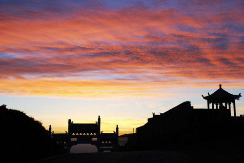 望海峰的盛景在于東觀日出。由于東面再無大山阻擋,所以人的目力可東眺非常遙遠(yuǎn)的地方。峰頂曾建有望海樓,專門為觀景而建??上昃靡褮?,1985年重建,為望海寺,內(nèi)供聰明文殊。有史籍記載日出之壯麗景象:“每當(dāng)蒸云寢壑之隙,爽氣澄秋之際,于日出扶桑之時,可望紅日十倍于車輪,紅輪之下,隱隱水光閃爍,若波若鏡,瑰麗非凡。1977年8月,趙樸初先生登東臺觀日出后乘興填詞《五臺雜詠·調(diào)寄憶江南》,形象描繪了東臺日出之勝景: 東臺頂,盛夏尙披裘。 天著霞衣迎日出,峰騰云海作舟浮。 朝氣滿神州。 東臺頂有時出現(xiàn)一種神奇的光環(huán)現(xiàn)象,在地理學(xué)中稱之為“峨眉寶光”,在佛教界稱之為“佛光”,僧尼俗稱為“佛祖顯圣”。這種現(xiàn)象東臺頂出現(xiàn)較多,在菩薩頂、黛螺頂也曾發(fā)生過。1985年臺懷上空出現(xiàn);1988年8月22日菩薩頂上空出現(xiàn)。
