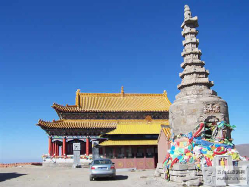 五臺山中臺翠巖峰,又名平頂山,海拔2894米,居東、西、南、北四臺的中心,也是四臺的發(fā)脈之祖,臺頂面積也最大?!肚鍥錾街尽吩疲骸皫p巒雄曠,翠靄浮空”。其山勢酷似一頭挺立的雄獅。臺頂寺院名作演教寺,內(nèi)供孺童文殊。