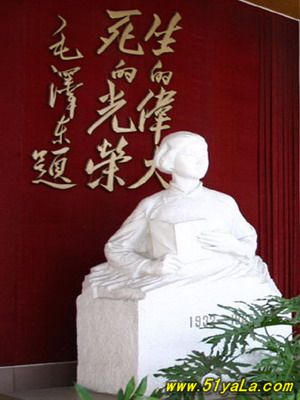劉胡蘭(1930-1947),中國共產黨黨員,1946年參加革命,1947年山西軍閥閻錫山的軍隊突然襲擊時被捕,英勇不屈,在敵人鍘刀下壯烈犧牲。毛澤東曾在當時《晉綏日報》上為之題詞:“生的偉大,死的光榮?!?/p>