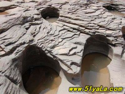 壺口至孟門近鄰的山脈默然后退了許多,蒼茫的天際幻化出峰巒的剪影。龍槽兩岸淡褐色的石板面上,顯露出許多樹葉、鳥蟲等古化石圖案。其間還夾雜著一個(gè)個(gè)儲(chǔ)滿清水,可把山川景色映照其間的石窟,小者如杯,大者如甕,或斜或直直伸石底,如同一面面形態(tài)各異的鏡子。 據(jù)考證,這些石窩水洼并非人工所鑿,而是經(jīng)洪水激流數(shù)干年來沖擊石塊盤旋磨蝕而成,因此,每個(gè)坑從坑沿滑到壁都光滑無比,而且每個(gè)石窩里都有一個(gè)圓形石頭。明代有人作詩贊曰:“河底有天涵兔影,山間無物掩蟾光……因其孟門開寶鏡,嫣娥向晚理殘妝”。 (責(zé)任編輯:李冬梅) |