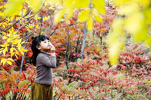 秋的來訪,使綠葉開始慢慢褪色,不多久,便全部染成黃色。幾名游客在定襄鳳凰山拍攝取景。進入秋季的鳳凰山色彩繽紛,層林盡染,景色如童話世界的“多彩王國”,吸引眾多游客前來觀賞景色。(曹建國 攝)