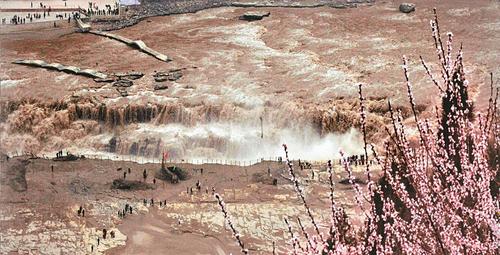 3月19日,隨著氣溫不斷回升,黃河上游融冰開河。壺口瀑布水量驟增,流量達(dá)到每秒2440m3,迎來了一年一度的“桃花汛”。當(dāng)日,瀑布群猶如萬馬奔騰齊嘶鳴,頗為壯觀。由于陜西宜川黃河景區(qū)地勢(shì)較低,大量的河水臨時(shí)涌進(jìn)主副瀑布,為了安全,游人暫時(shí)不能近距離觀看。