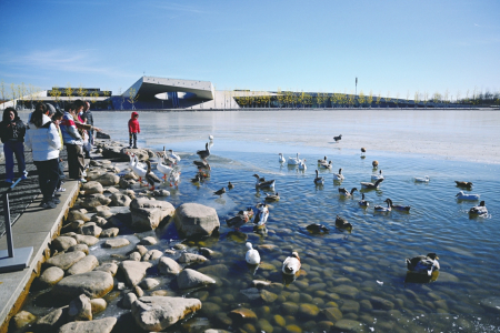 1月11日,太原植物園內(nèi),鵝、野鴨等禽鳥與游客互動(dòng)嬉戲。近年來(lái),該園良好的生態(tài)環(huán)境吸引了眾多鳥類前來(lái)?xiàng)?,形成一道和諧美麗的風(fēng)景。