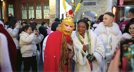 2024年12月4日,中國的傳統(tǒng)節(jié)日春節(jié)正式列入聯(lián)合國教科文組織《人類非物質文化遺產代表作名錄》,標志著春節(jié)這一中國文化瑰寶走向全球,成為全人類共同的文化遺產。本次活動中,現(xiàn)場也多了許多身著中華傳統(tǒng)服飾的“洋面孔”。這些來自世界各地的外籍友人身著漢服,記錄在忻州古城的新奇體驗,從國際視角感受山西年俗文化的獨特魅力,進一步推動了“歡樂中國年地道山西味”這一山西文旅IP品牌國際化傳播。
