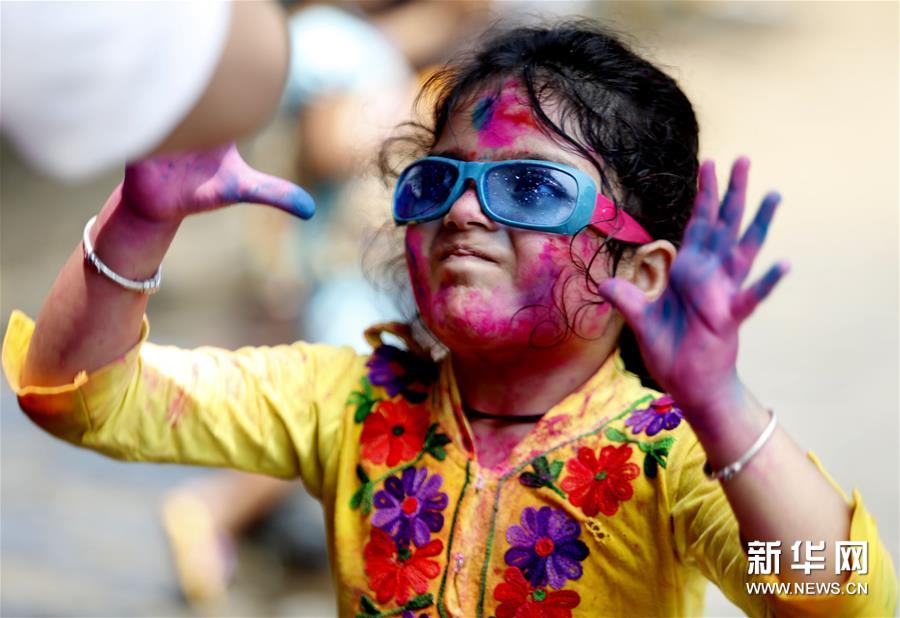 胡里節(jié)也叫“灑紅節(jié)”,人們在自己臉上和身上涂上顏料,還向別人拋撒五顏六色的顏料和粉末,迎接春天的到來。新華社發(fā)(吳昂 攝)