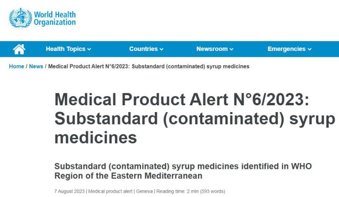 自2022年10月至今,世衛(wèi)組織曾多次就其他受污染液體劑量藥品發(fā)布警報。