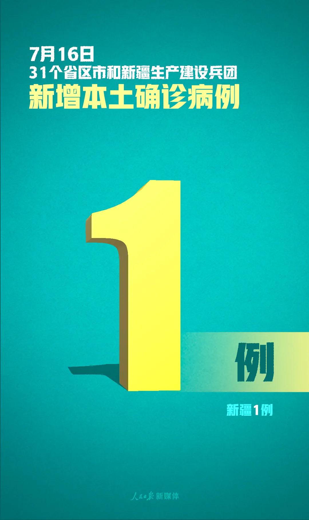 7月16日0—24時,31個?。ㄗ灾螀^(qū)、直轄市)和新疆生產(chǎn)建設兵團報告新增確診病例10例,其中境外輸入病例9例(廣東4例,上海1例,江蘇1例,山東1例,廣西1例,陜西1例),本土病例1例(在新疆);無新增死亡病例;新增疑似病例1例,為境外輸入病例(在上海)。