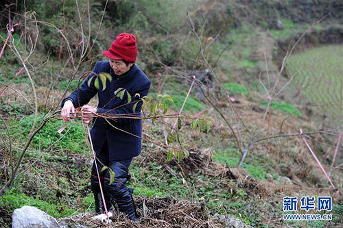 余啟良在管護(hù)村里的果樹(2018年12月21日攝)。 新華社發(fā)(楊文斌 攝)