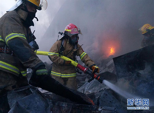 陳三喜(中)在滅火中(資料照片)。 新華社發(fā)