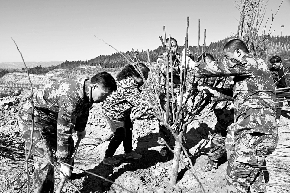 北方的三月,還看不到漫山綠意。植樹節(jié)當(dāng)日的陽(yáng)曲北山彩旗飄揚(yáng),一派熱鬧景象。從四面八方趕來(lái)種樹的學(xué)生、官兵、警察等社會(huì)各界人士,把一個(gè)又一個(gè)山頭裝扮得五彩繽紛。