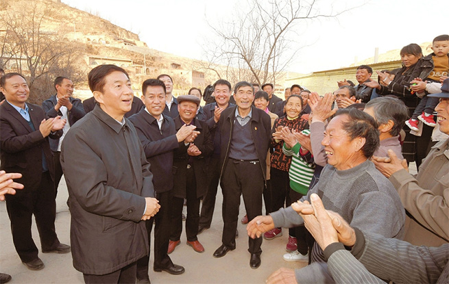 三月二十五日,駱惠寧在臨縣大禹鄉(xiāng)前陽塔村指導干部進村服務工作,與村民們親切交談,希望在整村脫貧基礎(chǔ)上確立新的目標,繼續(xù)努力奮斗,使日子越過越好。