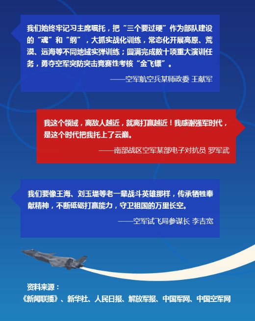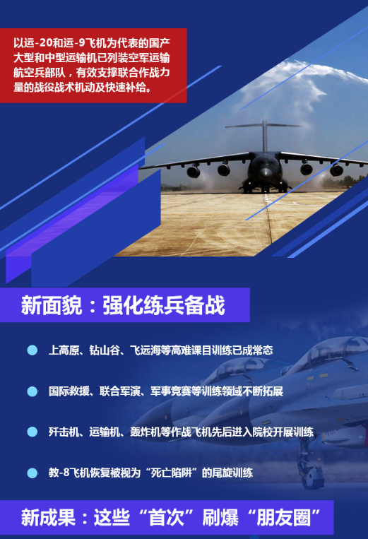 今年是新中國成立70周年,也是中國空軍建軍70周年。中國空軍以習(xí)近平強(qiáng)軍思想為指引,緊緊圍繞黨在新時代的強(qiáng)軍目標(biāo),部署和推進(jìn)了一系列戰(zhàn)略布局和戰(zhàn)略舉措。