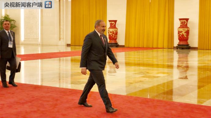 △前來與習近平會面的亞美尼亞總理帕什尼揚。(央視記者許永松拍攝)