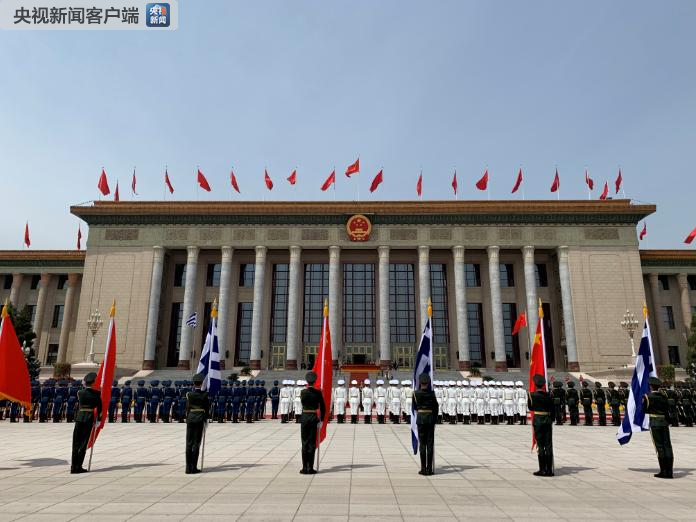 △習近平舉行儀式歡迎希臘總統(tǒng)訪華。