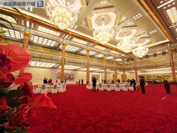 △習近平發(fā)表祝酒詞的講臺。(央視記者張宇拍攝)