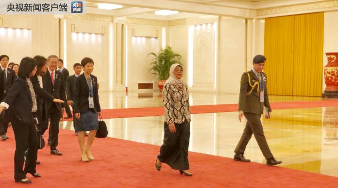 △前來與習近平會面的新加坡總統(tǒng)哈莉瑪。(央視記者許永松拍攝)