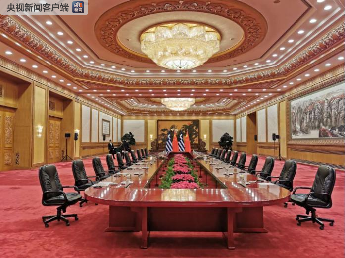 △習近平和希臘總統(tǒng)帕夫洛普洛斯在人民大會堂東大廳會談。(央視記者荊偉拍攝)
