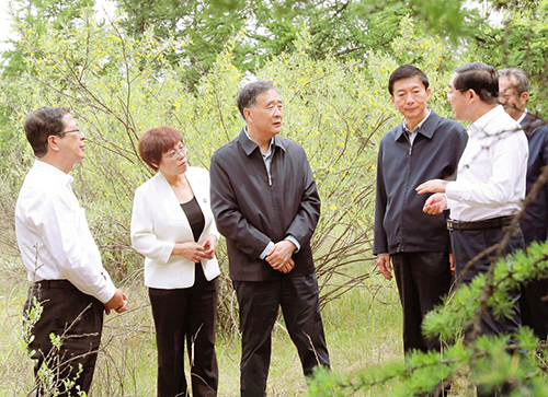 近日,中共中央政治局常委、全國(guó)政協(xié)主席汪洋在山西省右玉縣調(diào)研脫貧攻堅(jiān)工作。這是6月5日,汪洋在右玉縣四五道嶺考察植樹(shù)造林、水土保持、生態(tài)綜合治理情況。新華社記者 劉衛(wèi)兵 攝