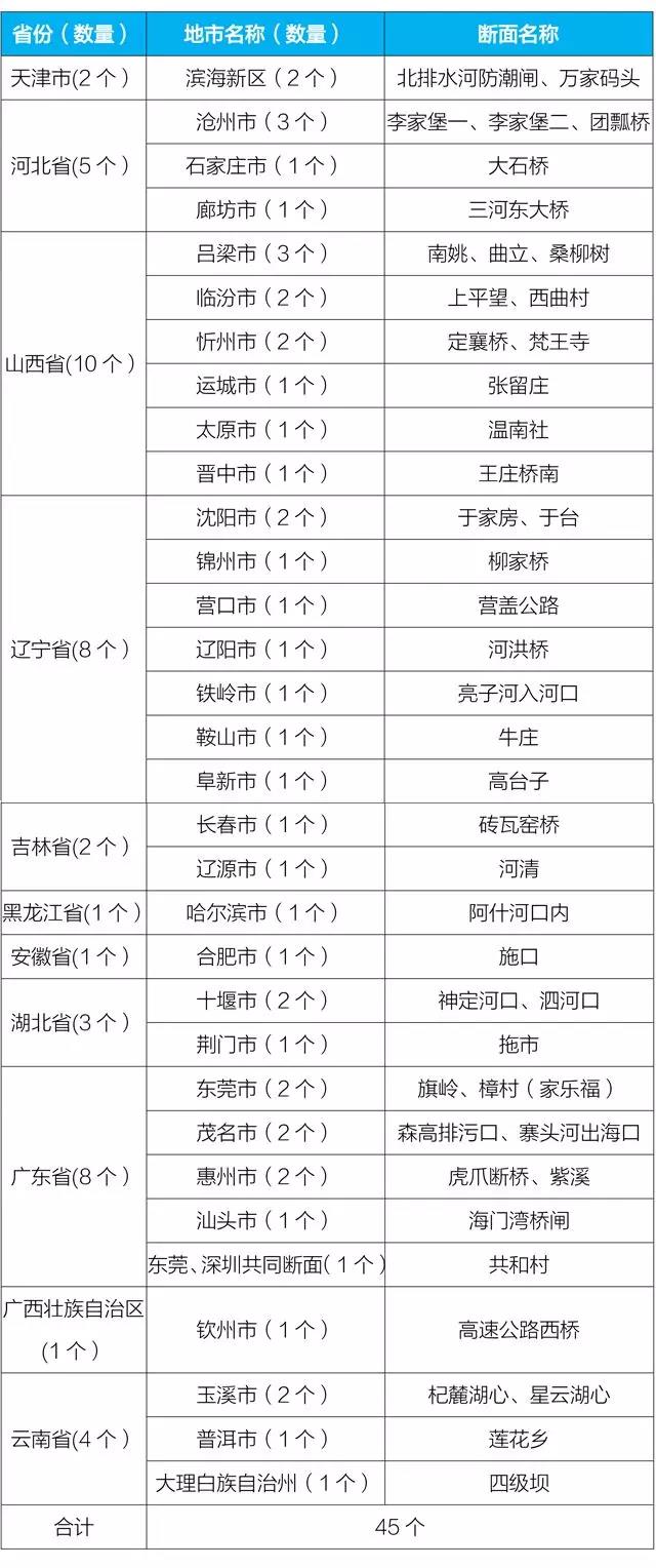 1-5月平均及5月份單月均為劣Ⅴ類的國控斷面共計45個,數(shù)量較多的省份是:山西(10個)、遼寧(8個)、廣東(8個)、河北(5個);數(shù)量較多的地市是:呂梁(3個)、滄州(3個)。