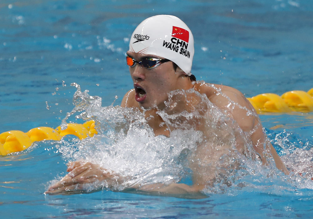 3月21日,汪順在男子400米個人混合泳決賽中。新華社記者 雒圓 攝