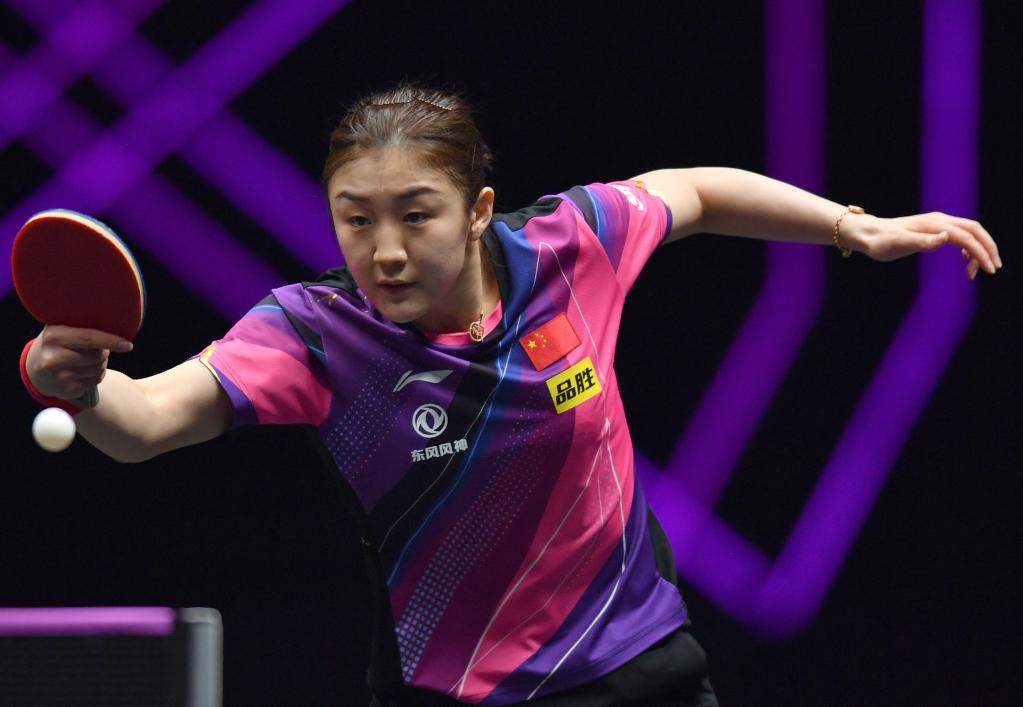 4月13日,陳夢在比賽中回球。新華社記者李嘉南攝