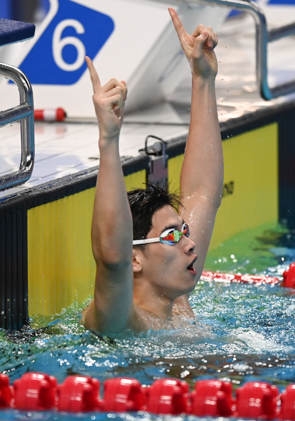 “前面我想跟著順哥(汪順)游,后來覺得自己還能更快一些,就放開了游。不過最后50米我還是有些擔(dān)心順哥的沖刺能力。他在陜西全運(yùn)會上以1分46秒14奪冠的時候,我還只能游到1分48秒,沒想到真的能夠超越前輩?!迸苏箻焚惡笳f。