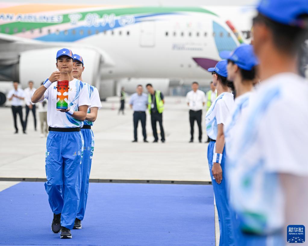 新華社成都6月8日電(記者陳地)8日上午,第31屆世界大學(xué)生夏季運(yùn)動(dòng)會(huì)火炬?zhèn)鬟f啟航儀式在成都天府國際機(jī)場(chǎng)舉行?;鹁婊鸱N抵達(dá)北京后,將于10日正式開啟成都大運(yùn)會(huì)火炬?zhèn)鬟f。
