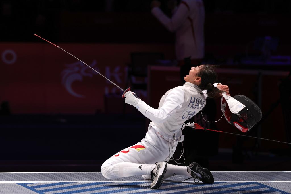 新華社杭州9月25日電(記者黃垚、董意行)闊別21年,亞運(yùn)會(huì)女子花劍個(gè)人金牌再次花落中國隊(duì)。 25日,杭州亞運(yùn)會(huì)女花個(gè)人決賽中,隨著黃芊芊刺中制勝一劍,顯示器上的比分定格在15:8。這位21歲的中國女花新星,為中國擊劍隊(duì)斬獲本屆亞運(yùn)會(huì)首金。