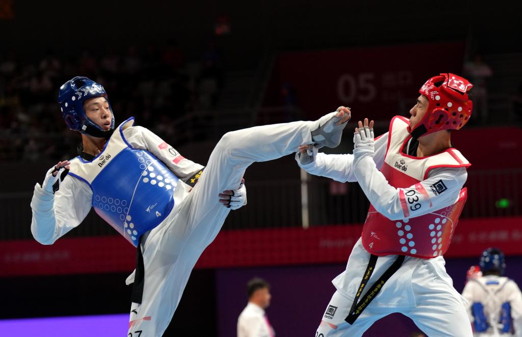 12月16日,在2023世界大滿貫冠軍系列賽暨奧運直通卡賽女子67公斤級決賽中,宋潔(右)擊敗隊友張夢宇獲得冠軍。新華社發(fā)(還月亮攝) 世界跆拳道團體世界杯錦標(biāo)賽是在無錫創(chuàng)辦的賽事,設(shè)混合團體項目。世跆聯(lián)也將每年世界杯總決賽放在無錫舉行。跆拳道混合團體項目在東京奧運會和明年的巴黎奧運會上都是表演項目,并在亞運會、青奧會上成為正式比賽項目。在杭州亞運會上,中國隊奪得該項目冠軍。 按照規(guī)則,跆拳道混合團體賽每隊上場隊員由男、女各兩名運動員組成,此外還可以有兩名替補選手,比賽采取三局累積分定勝負(fù)制,除首局4分鐘雙方按性別和重量級一對一分別進行1分鐘對抗外,后兩局在保證上場對陣選手性別一致的前提下,可任意換人上場。 當(dāng)日比賽中,中國隊以大比分擊敗印度隊和巴西隊闖進決賽,對手是擊敗了韓國隊的烏茲別克斯坦隊。決賽中,中國隊出戰(zhàn)的四名選手分別是女選手宋潔、周澤琪和男選手崔陽、孟明寬,前三人都是杭州亞運會中國隊奪冠陣容的選手。