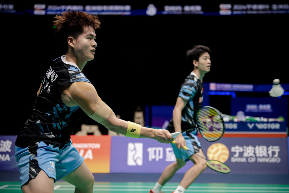 4月14日,梁偉鏗(左)/王昶在比賽中。新華社記者 江漢 攝 男雙決賽中,3號(hào)種子梁偉鏗/王昶以21:17、15:21和21:10擊敗馬來西亞組合吳世飛/伊祖丁。寧波人王昶如愿在家鄉(xiāng)登頂,賽后他說,就是奔著冠軍來的。 混雙金牌也歸屬中國隊(duì)。一場(chǎng)火花四濺的較量后,馮彥哲/黃東萍以13:21、21:15和21:14逆轉(zhuǎn)韓國的世錦賽冠軍組合徐承宰/蔡侑玎。