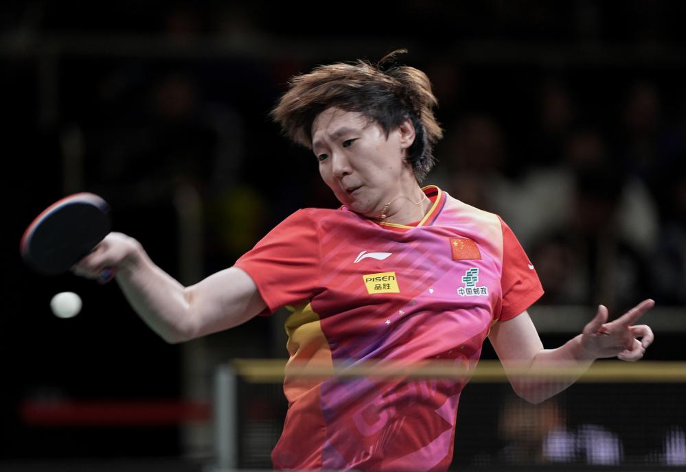 12月8日,中國(guó)隊(duì)選手王曼昱在女單比賽中回球。新華社記者 江宏景 攝