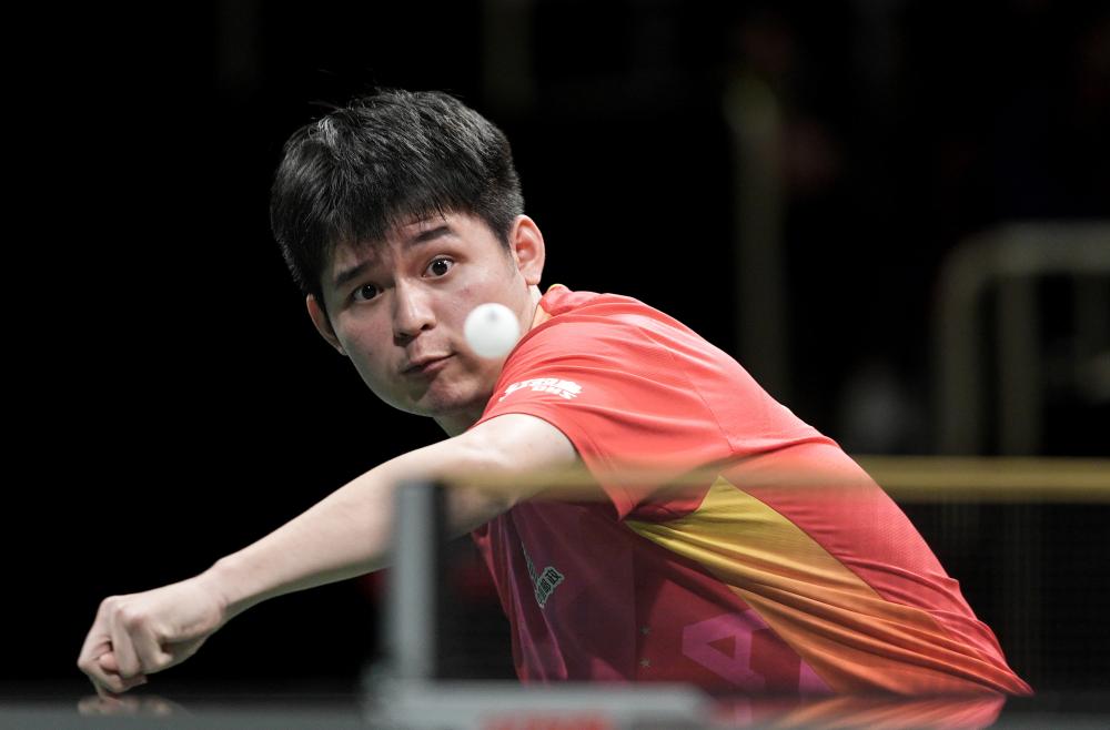12月8日,中國(guó)隊(duì)選手林詩(shī)棟在男單比賽中。新華社記者 江宏景 攝