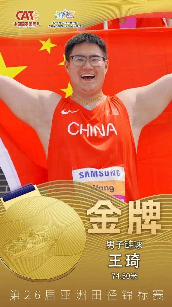 王琦奪冠后慶祝。圖源:中國田徑隊