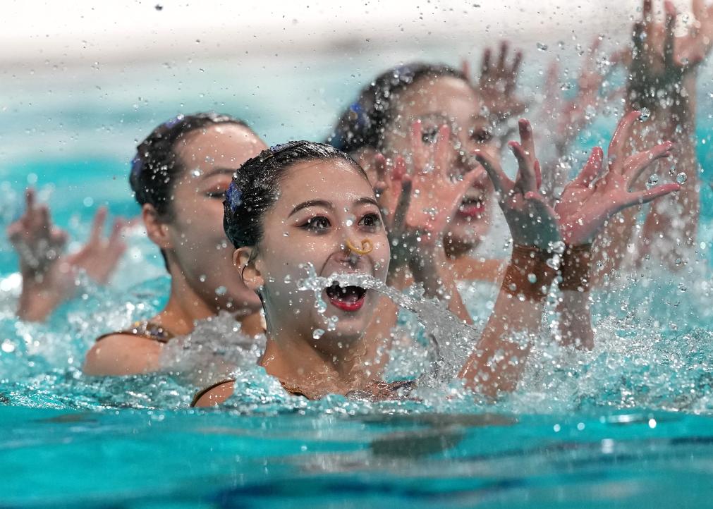 集體技巧自選比賽中,中國隊的新節(jié)目《秦俑魂》驚艷亮相。該節(jié)目以西安的兵馬俑為靈感,通過運動員們展示出的高難度動作與默契配合,在水中展現(xiàn)出鐵血與柔情的雙面魅力。最終中國隊以233.0430分力壓對手奪得金牌。西班牙隊憑借高超藝術(shù)表現(xiàn)力獲得一枚銀牌,墨西哥隊位列第三。