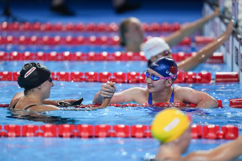 “我感覺挺驚喜的,我沒有想到會(huì)超過她(萊德茨基),這次前面按照自己的節(jié)奏來游,等最后100米的時(shí)候,我看跟她的差距不是很大,我想盡力去追一追?!崩畋鶟嵸惡笳f,“雖然可能她目前的競技水平不是在最好,但是我覺得這次(勝利)對我來說很重要,意義非凡!”
