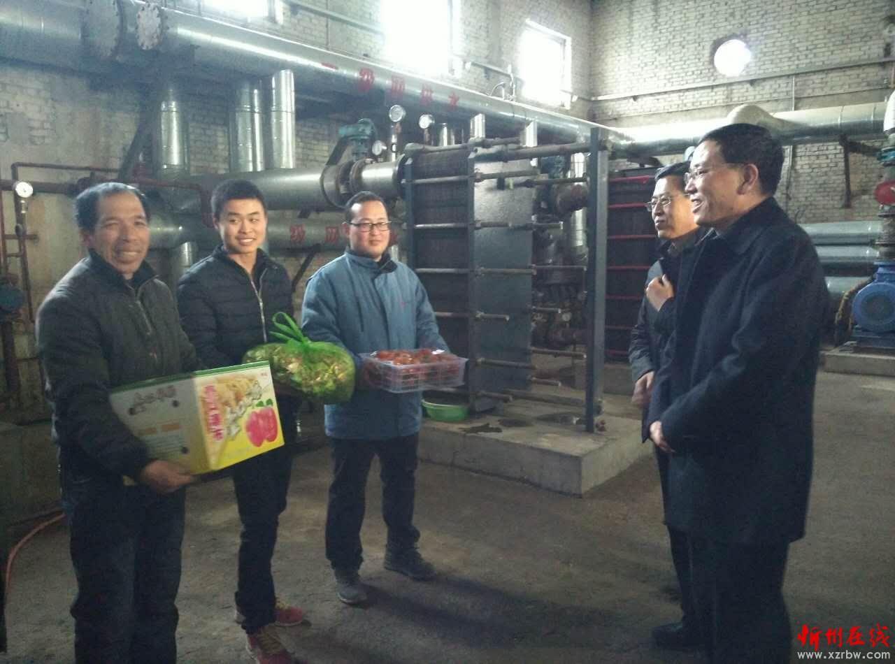 圖為副市長武憲堂在禹鑫公司運(yùn)輸公司供熱站慰問堅(jiān)守崗位的一線職工