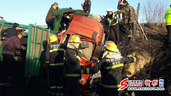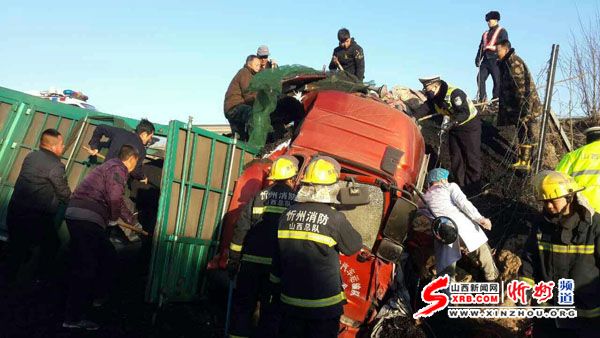 7:30分左右,定襄縣消防接警后緊急出動(dòng)趕到事故現(xiàn)場(chǎng),與交警及現(xiàn)場(chǎng)群眾一起展開(kāi)救援,隨后趕到的120醫(yī)護(hù)人員已給被困受傷司機(jī)打吊瓶進(jìn)行搶救。