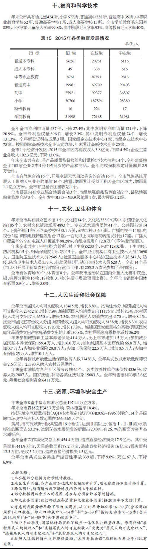 忻州市2015年國民經濟和社會發(fā)展統(tǒng)計公報