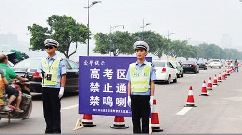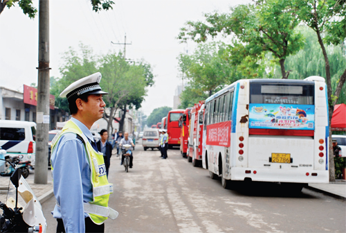 高考接送車(chē)有序停放