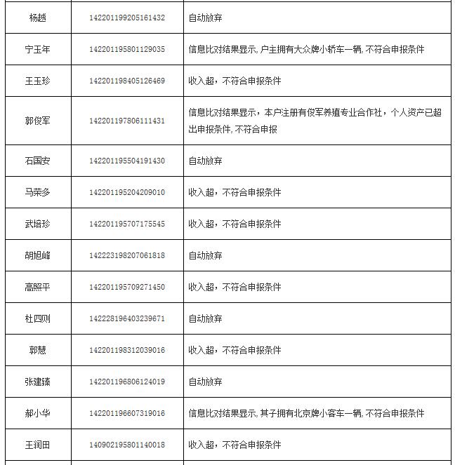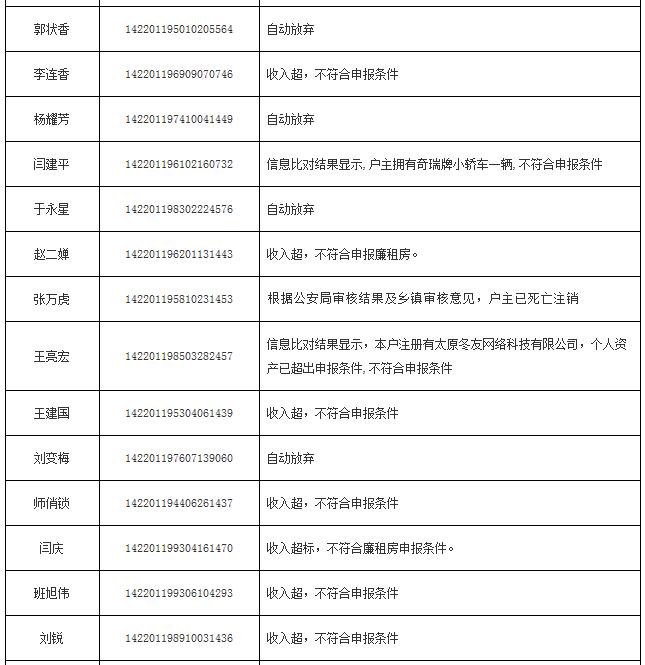 2014年申報(bào)公(廉)租房不符合保障條件花名表