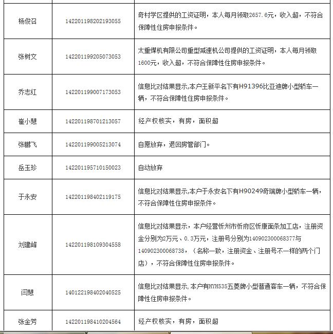 2014年申報(bào)公(廉)租房不符合保障條件花名表