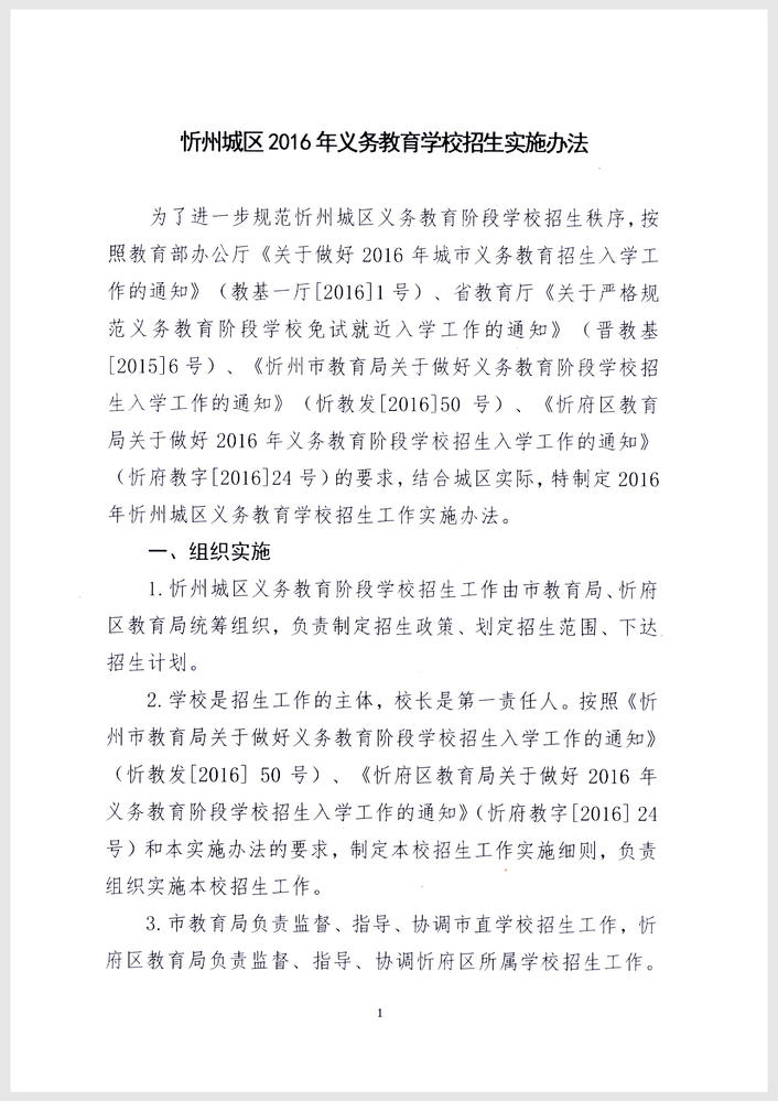 忻州城區(qū)2016年義務(wù)教育學(xué)校招生實(shí)施辦法