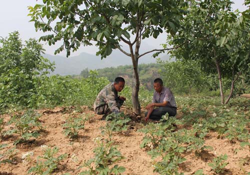 圖為山藥蛋地間作核桃樹。