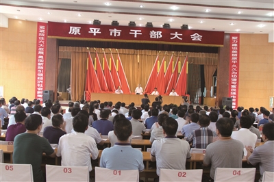 圖為原平市干部大會會場(趙春曉 攝)